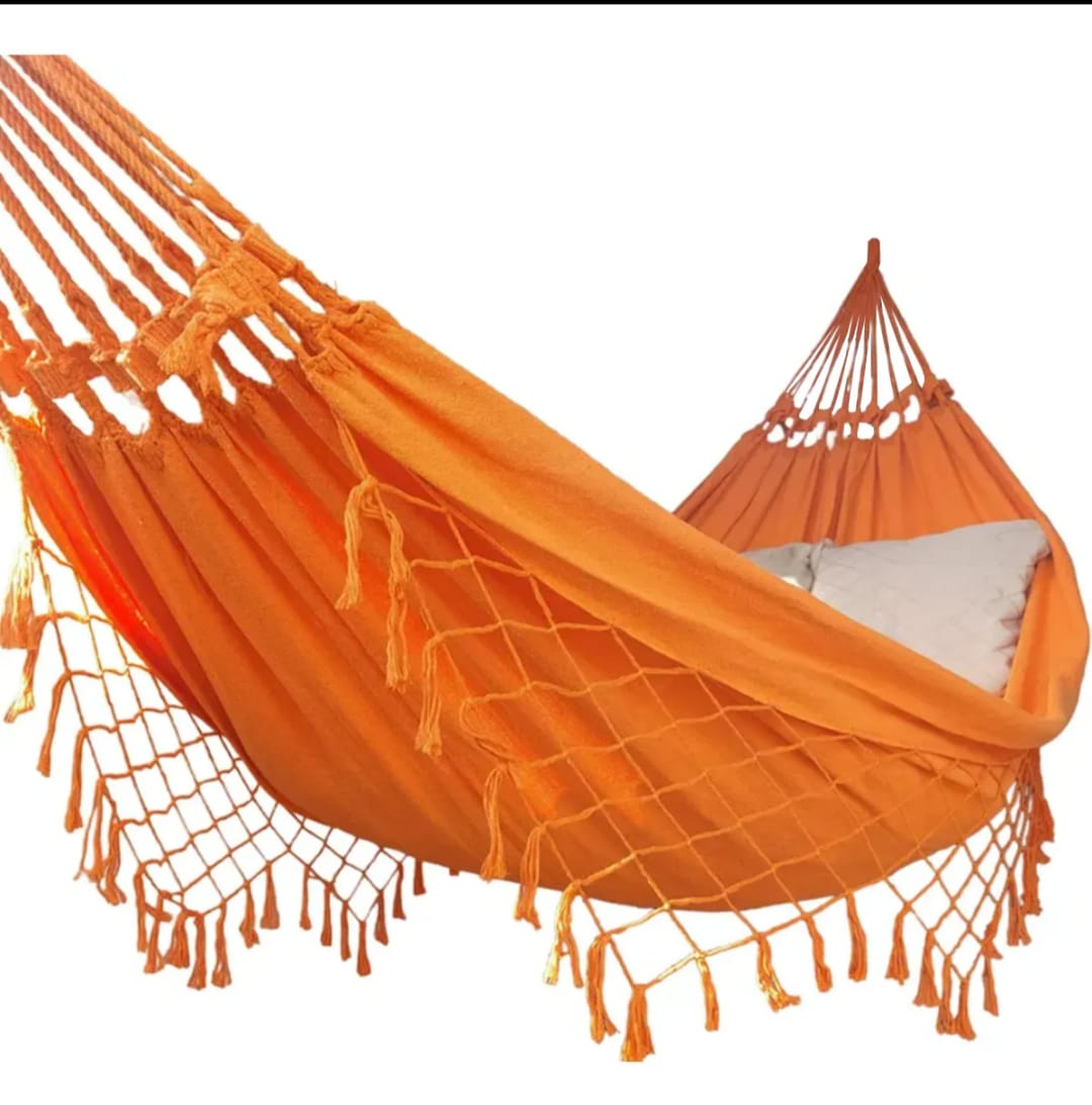 Rede de Descanso Casal, uma peça essencial para momentos de relaxamento e descontração. Com dimensões de 3,60 metros de comprimento e 1,5 metros de largura, é ideal para dois, proporcionando conforto e apoio. Fabricada em algodão, oferece uma sensação agradável ao toque, perfeita para desfrutar do seu espaço ao ar livre ou interior.
